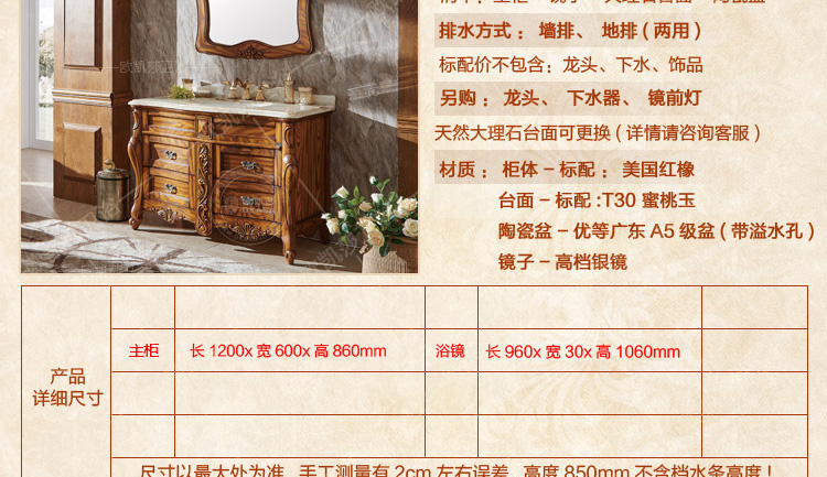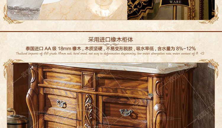我司實木浴室柜采用進口的泰國橡膠木(行業(yè)統(tǒng)稱為泰國橡木)和美國紅橡,請親知悉!