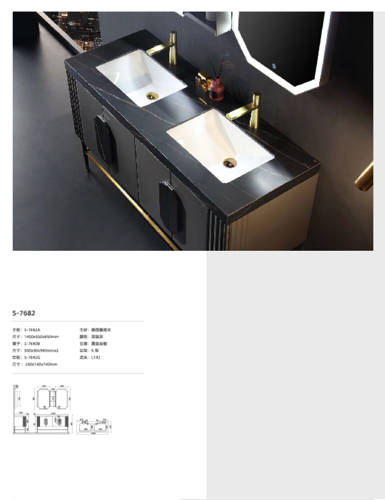 輕奢浴室柜S-7682 1400mmx530mmx850mm