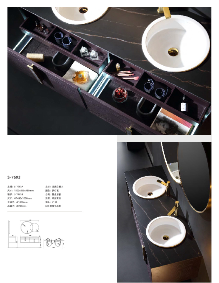 輕奢浴室柜S-7693 1500mmx520mmx450mm