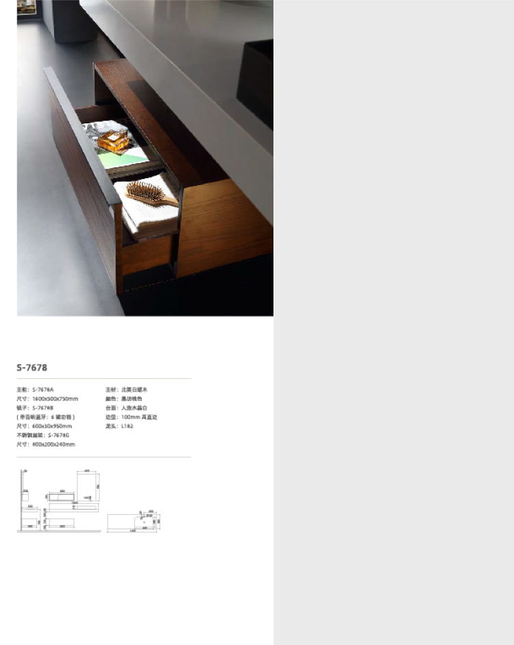 現(xiàn)代簡(jiǎn)約浴室柜S-7678 1600mmx500mmx750mm
