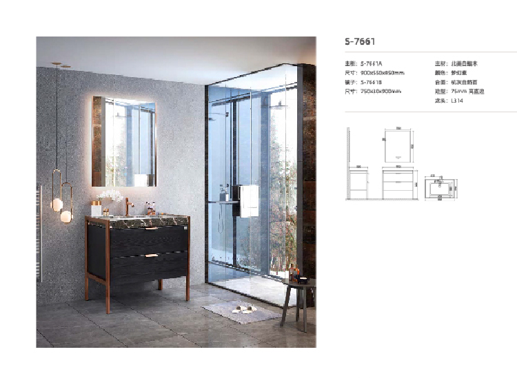 輕奢浴室柜S-7661 900mmx550mmx850mm