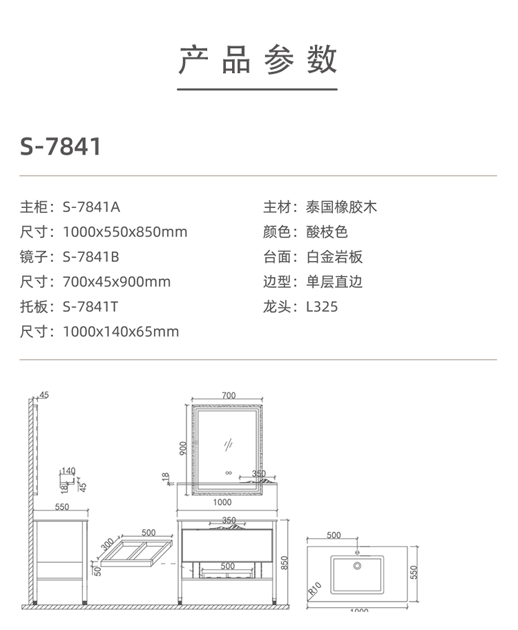 現(xiàn)代中式浴室柜S-7841【1000x550x850mm】