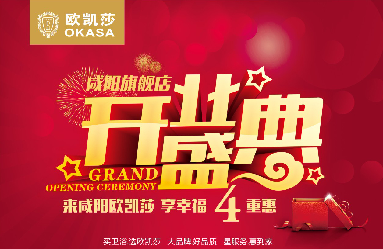 在開業(yè)期間,歐凱莎衛(wèi)浴咸陽(yáng)旗艦店推出了開業(yè)大酬賓活動(dòng):(1):幸福惠.進(jìn)門禮;(2)幸;.折上折;(3)幸福惠.領(lǐng)獎(jiǎng)品;(4)幸;.星服務(wù)等;