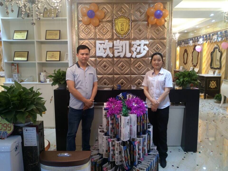 (區(qū)域經(jīng)理許斌與歐凱莎咸陽(yáng)旗艦店王總合影)